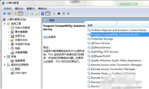 3、在服务列表中找到“Program Compatibility Assistant Service”并双击打开;