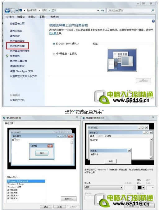 想要更改Win7默认字体,首先要在控制面板的“外观”中找到“显示”一项,选择左侧的“更改配色方案”,点击进入窗口颜色和外观对话框,再点击“高级”按钮,在接下来的界面中,我们就可以选择自己喜欢的系统显示字体了。