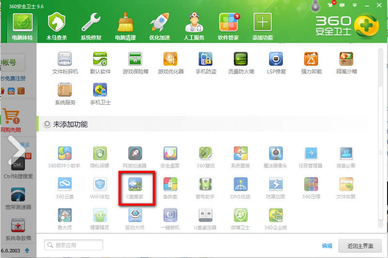 第二步:点击以后会跳转到另一个页面内,在这个页面找到"C盘搬家"