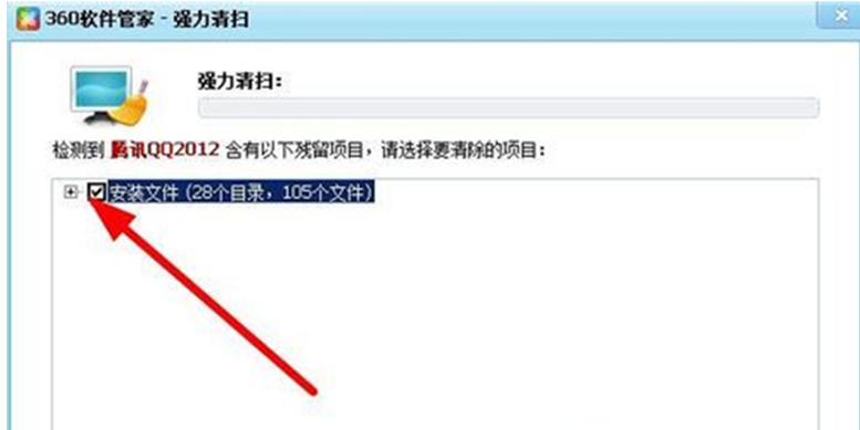 6、接着找到腾讯qq,你会发现存在残留,点击右侧的【强力清扫】,我们进一步删除无用的文件
