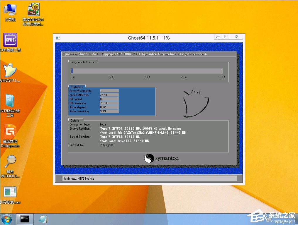 如果你下载的系统为iso包,则会自动解压并复制到软件所在目录,然后电脑自动重启进入安装系统界面。如下图: