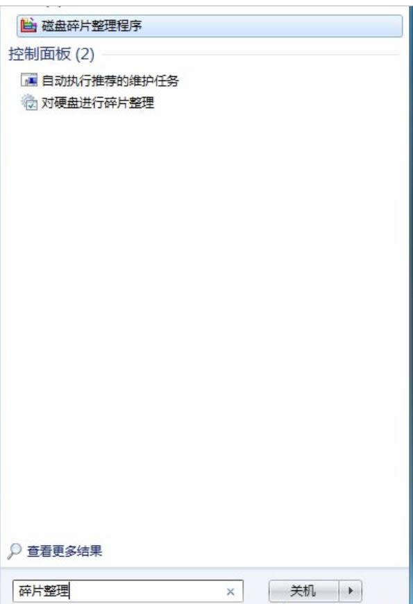 3、或者可以直接在“开始”菜单中搜索也可以打开“磁盘碎片整理程序”;