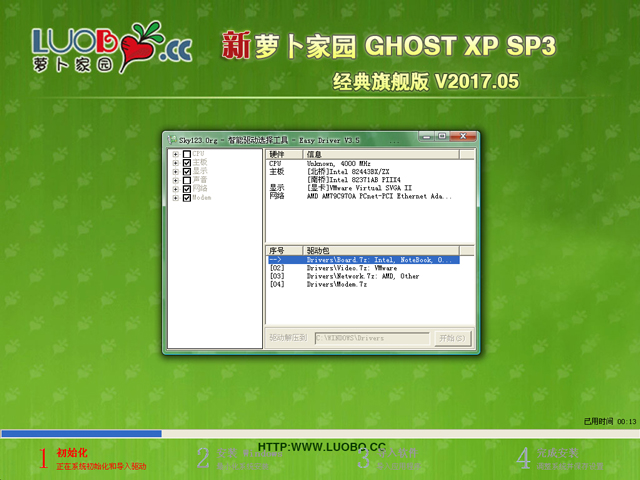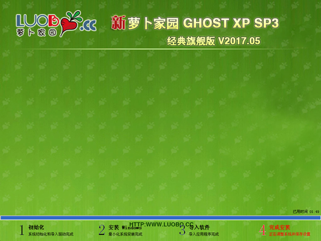 萝卜家园 GHOST XP SP3 经典旗舰版 V2017.05 采用人性化设计,并且安全纯净、适用性强,系统不含任何病毒、木马及流氓软件,支持各类新老机型,是一款不可多得的精品系统。