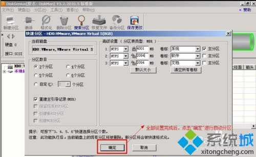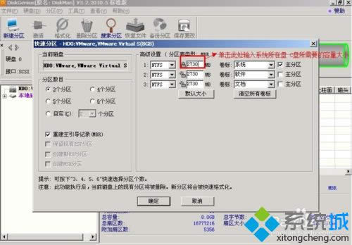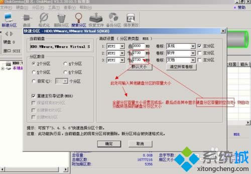9、修改分区数目的容量大小。并点击其它分区容量空白处,自动调整全部容量;