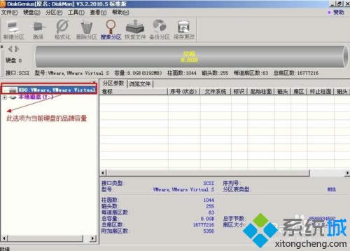2、选择所需要分区的硬盘,注意看硬盘容量大小以及生产厂家,以免误分其它硬盘;