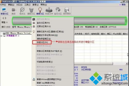 4、鼠标放在所要分区的硬盘上面,鼠标右击会出现下面的选择菜单;