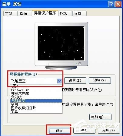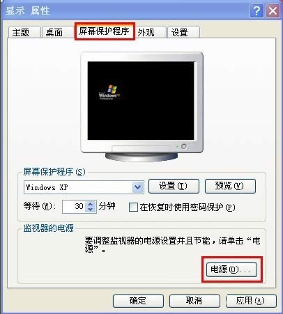 2、打开属性对话框,然后选择“屏幕保护程序”下的“电源”并点击;