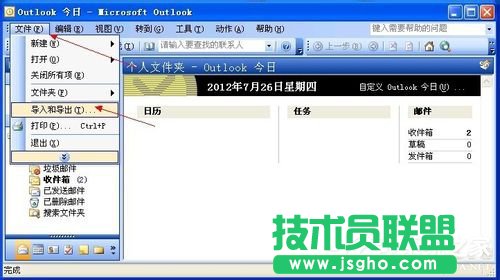 2、单击菜单栏的“文件”,打开的下拉菜单单击“导入和导出”命令。