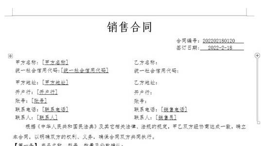 就是用打开word,替换指定内容,再把合同写到桌面,写出的默认文件名:销售合同-“甲方名称”“当前日期”.docx