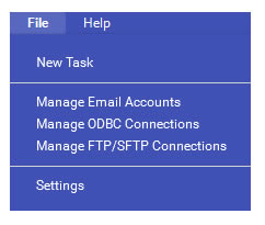 点击主界面的加号按钮添加任务,通过File菜单也可以,如果进行邮件、数据库、ftp相关操作,可以在File菜单中事先设置。