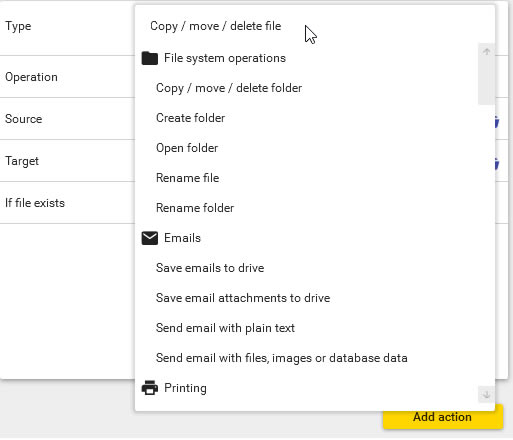 任务编辑界面可选操作很多,如创建文件夹、重命名文件、打印文件、运行程序、执行脚本(python、vbscript、javascript、powershell等)、锁定注销重启系统、发送通知等等,可以添加多个操作。