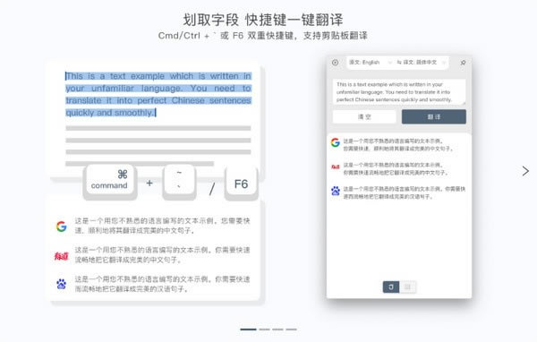 2、快捷翻译:选中待翻译文本,只需按下快捷键,多译帮您快捷翻译,无论您正在使用浏览器 Word 还是Pages,均可一键翻译需要的文字