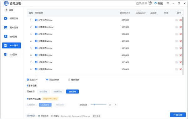 对Word的文字与图片进行二次压缩,保证压缩力度与质量,压缩后的文件格式默认为docx格式