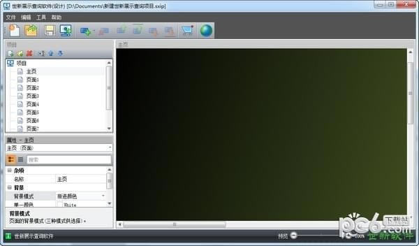 新建项目时软件自动在项目中添加11个页面,如果展示项目需要更多的页面,请点击项目窗口工具条的“新建页面”按钮,如下图所示:
