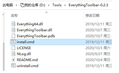 下载EverythingToolbar的压缩包后,解压并运行install.cmd安装,运行uninstall.cmd卸载。